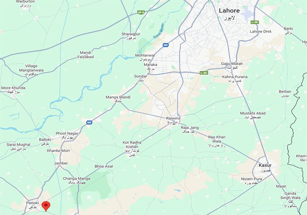 Pattoki is 50 miles (80 km) south west of Lahore.